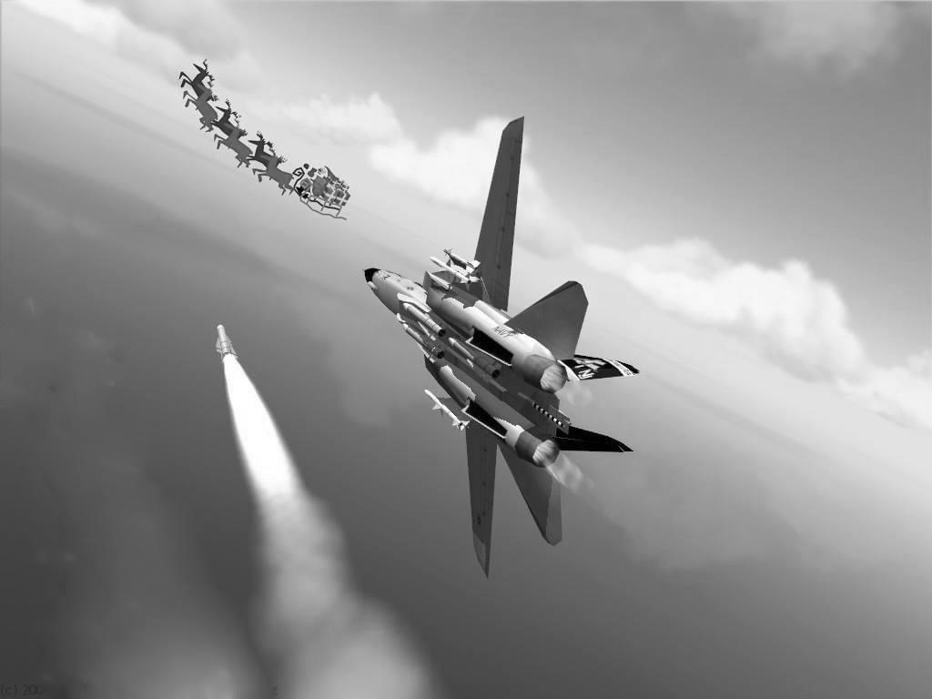 The image says it all: a U.S. Navy jet firing a missile at Santa’s sleigh, because apparently Christmas failed a compliance review.